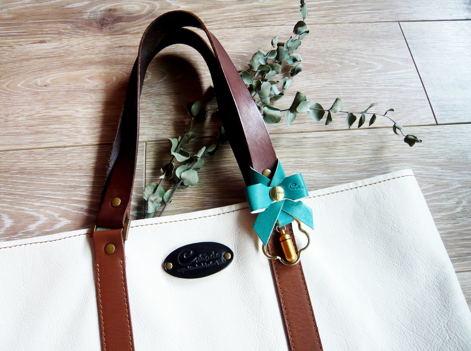 お花のリングがとってもキュートな本革リボンチャーム・キーホルダー。
