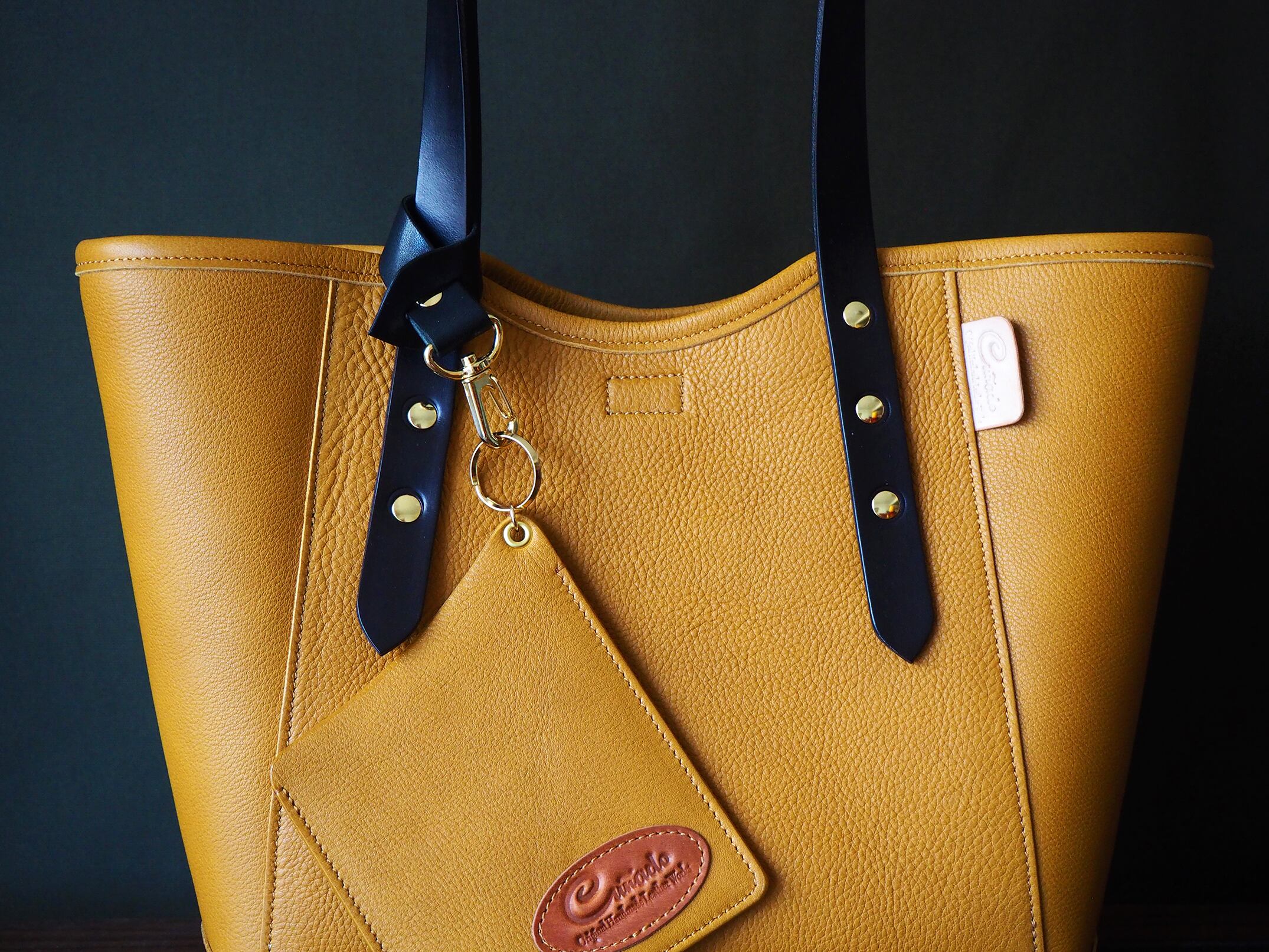 ◆長めに仕立てたハンドルには高級ラインレザーを使用。