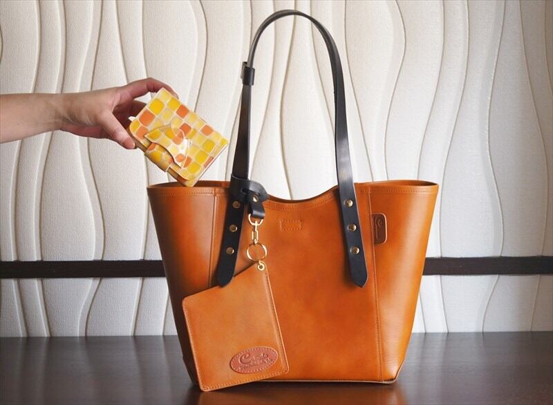 大人のためのスムースレザー贅沢ミニトートバッグ&本エナメルカードケース:ミモザカクテル