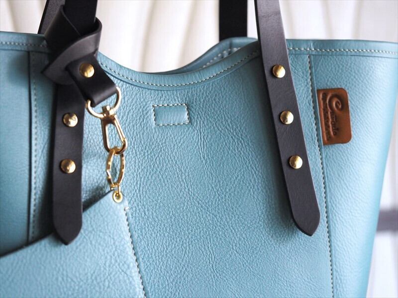 大人の女性にふさわしい『スモーキーブルー』は一年中大活躍する、シックな装いにも カジュアルなスタイルにも、なんにでもフィットする自慢のミニトートバッグ。