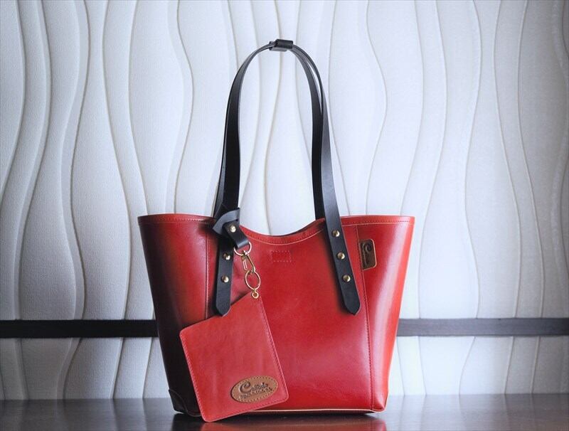 ★選べるハンドル2カラー★大人のためのヌメ革贅沢ミニトートバッグ:オールドレッド