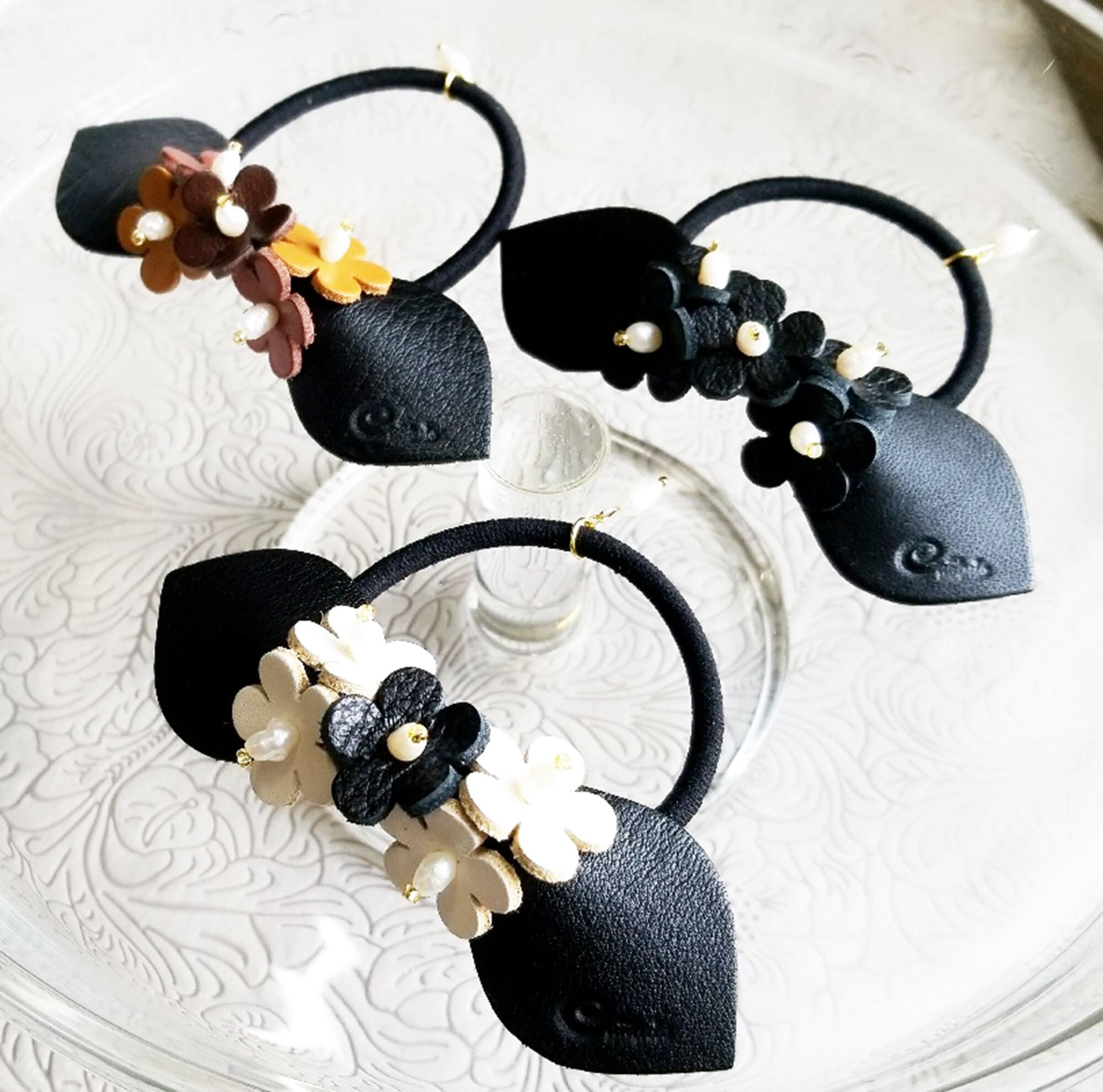 形状 本革ヘアゴム・リボンとお花